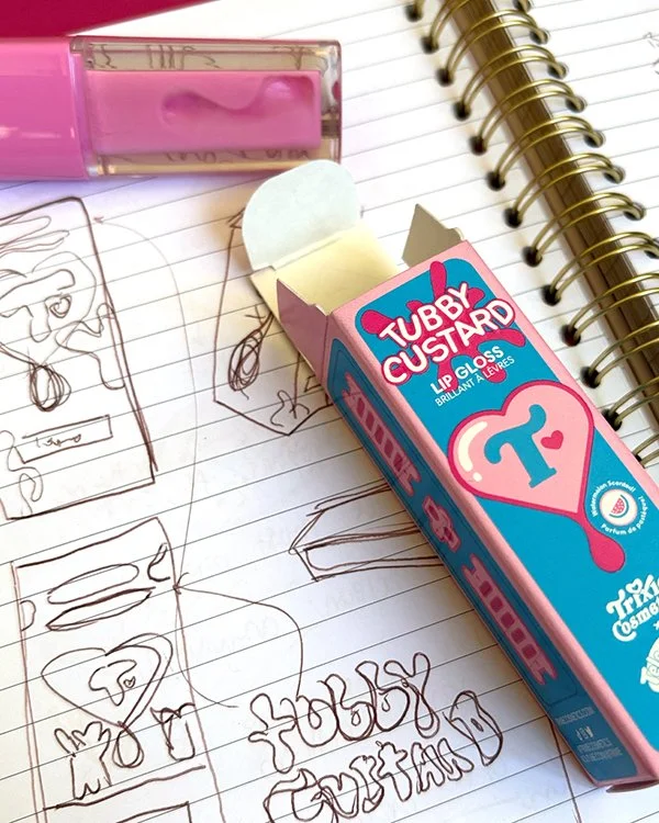 In addition to designing the palette, I also worked on all supplemental pieces of the collection: NooNoo lashes, a custom brush set, the accompanying red blush and a lip gloss inspired by the iconic Tubby Custard Machine.