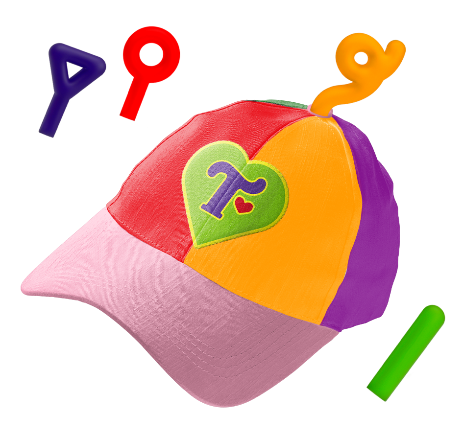 A baseball cap with the interactive twist of being able to swap out (included) Teletubbie antennas. The antennas would attach magnetically, similar to shoulder buddy plush toys made to sit securely on wearers shoulders.