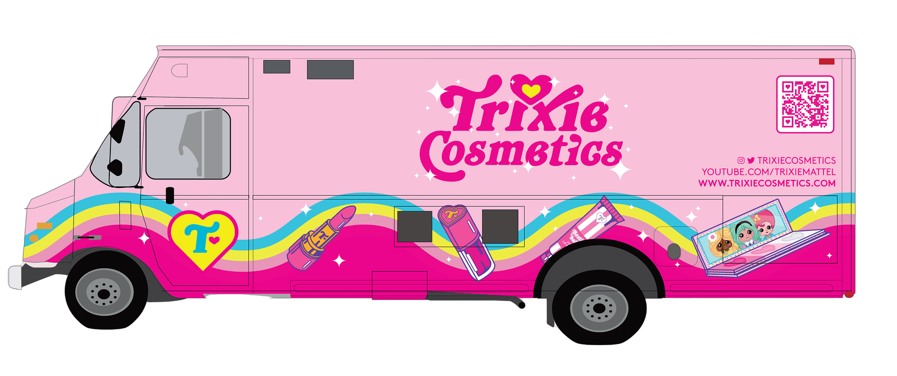 Created for their 2023 Pride activation, the Trixie Cosmetics “Trixie Mobile” truck wrap featured four of the brand’s hero products and a window with lashes fit for a queen.